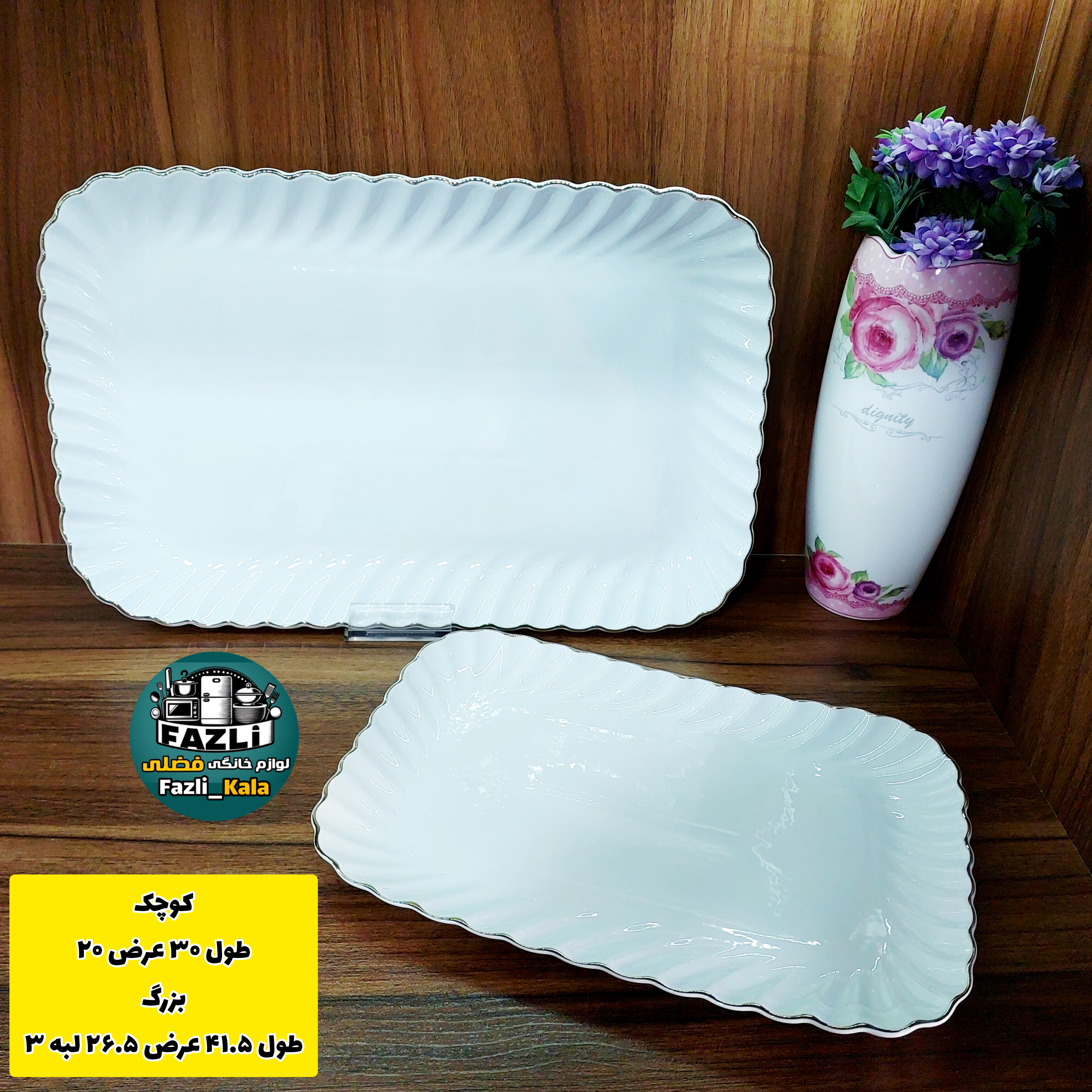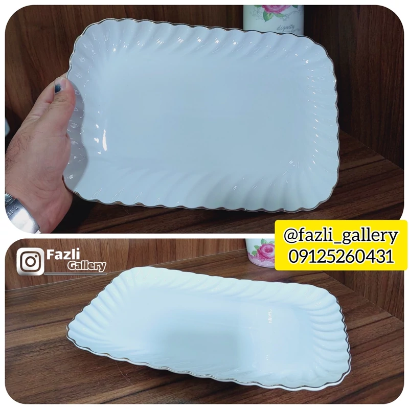 جنس: دیس مستطیل چینی لب طلا طرح کارمن