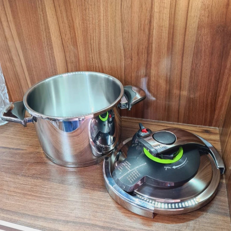 ◾زودپز 4 لیتری◾ ✔استیل خالص باکیفیت ✔کف چدن ضخیم ✔درب آسان باز شو کلیپسی ♻️باز کردن با چرخاندن راحت دستگیره درب ♻️بستن با زدن دکمه روی درب 🔴باکیفیت ترین جنس ترکیه ای 🔴برند معتبر راسل Rasel ساخت کشور ترکیه 🇹🇷 ❌️نوار دور درب ، هر دفعه یک رنگ موجود میشه و ممکن است سبز ، قرمز یا مشکی باشد❌️