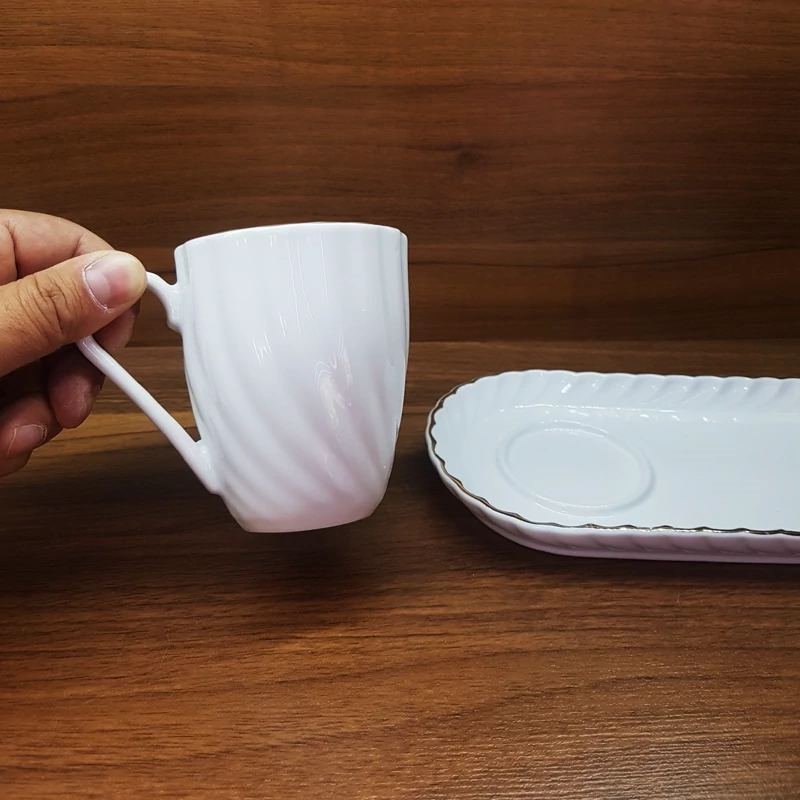 ماگ و نعلبکی کارمن جنس چینی درجه یک لب طلا کیفیت عالی درجه صادراتی تولید کارخانه چینی لمون Lemon