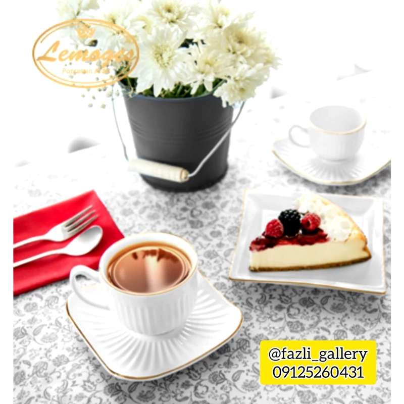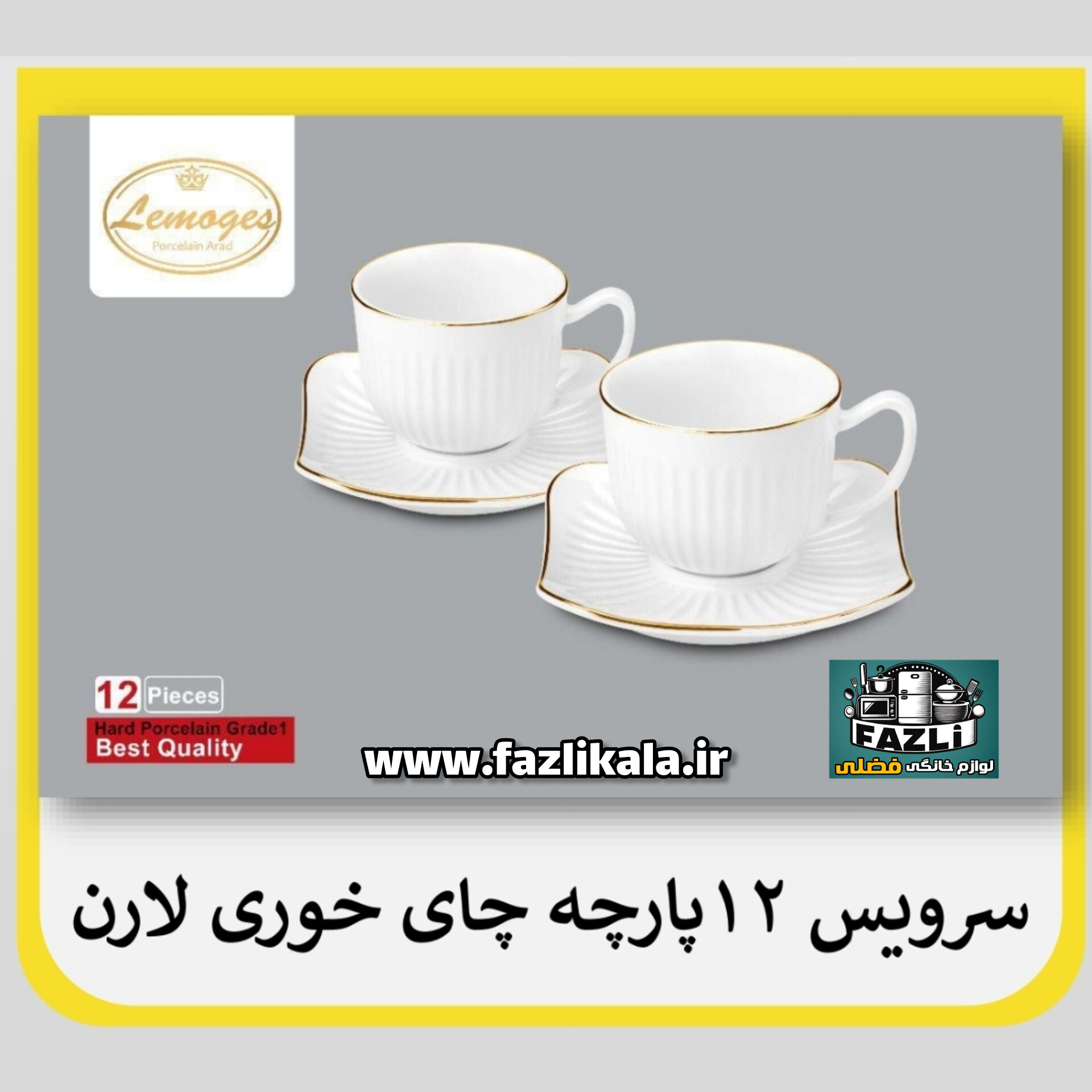 ست چایخوری طرح لارن چینی درجه یک لب طلا برند لمون ۱۲ پارچه ۶ فنجان و ۶ نعلبکی کیفیت عالی طرح جدید ساخت چینی صادراتی لمون