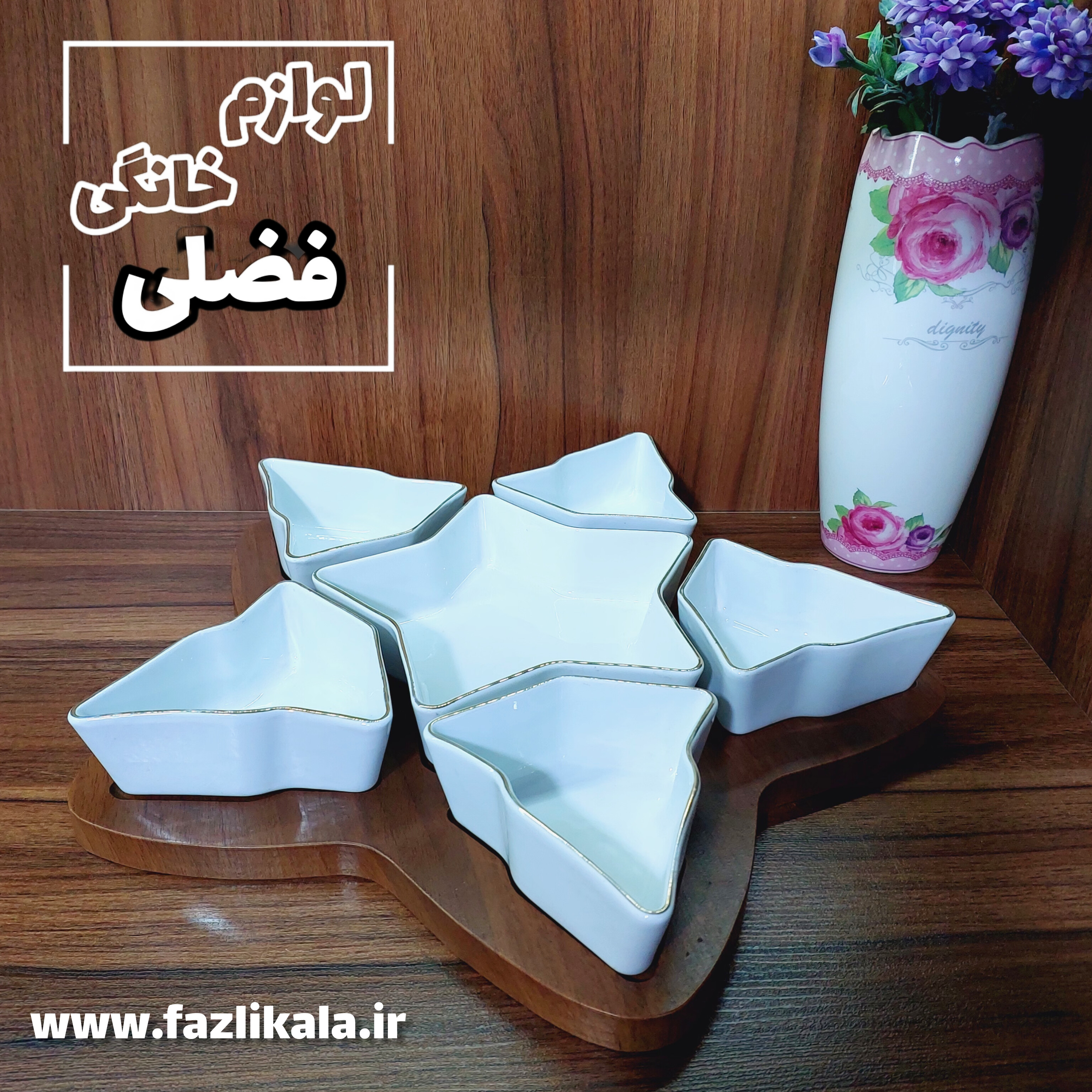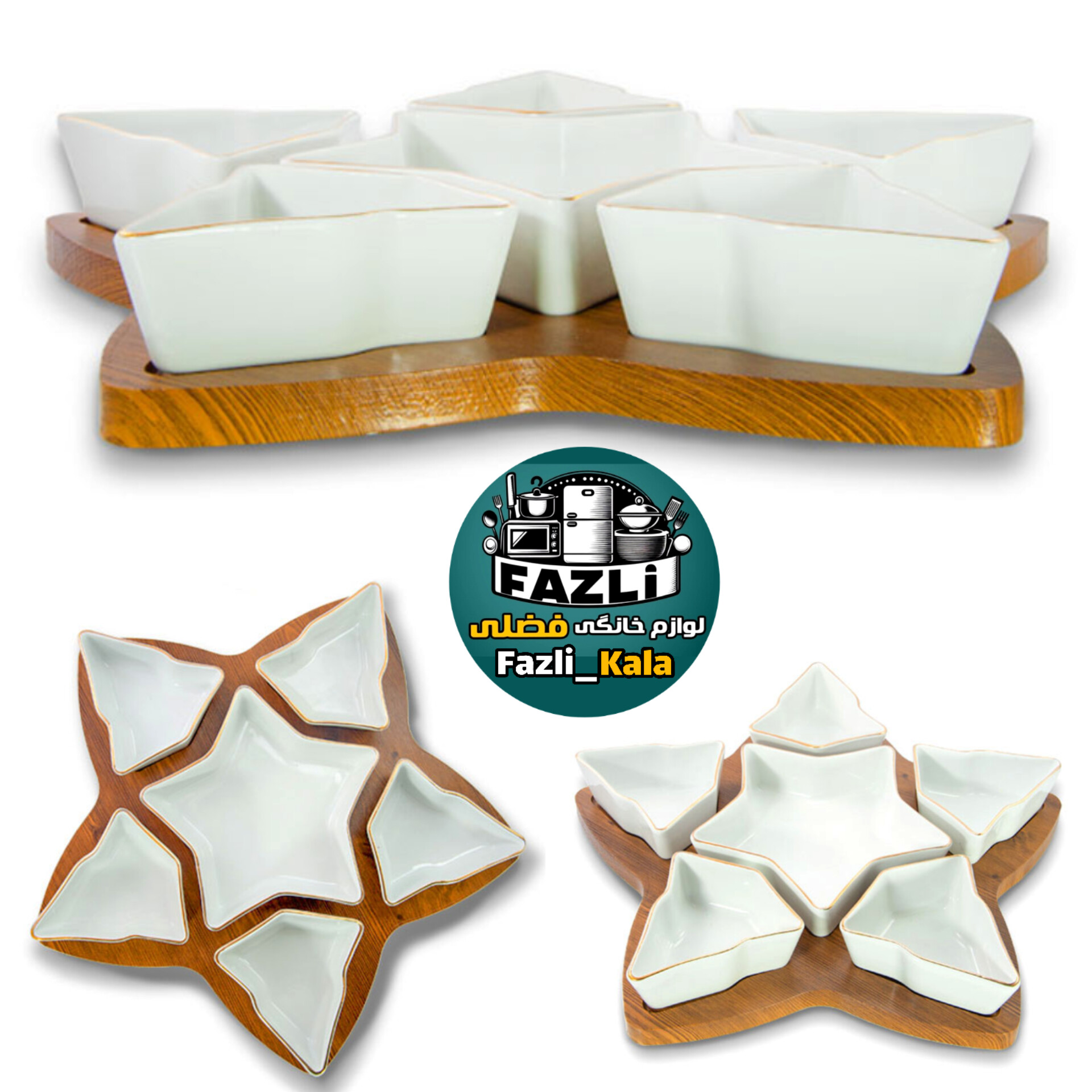 اردو خوری طرح ستاره لمون جنس چینی درجه یک با لبه های طلا جنس چوب زیره MDF با دقت ساخت بالا کارخانه چینی لمون ساخت ایران 🇮🇷