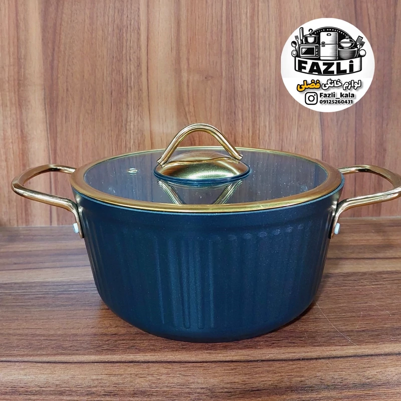 اندازه: سرویس ۱۰ پارچه شامل : ۴ قابلمه ۲۰_۲۴_۲۸_۳۲ و یک تابه دودسته ۲۸