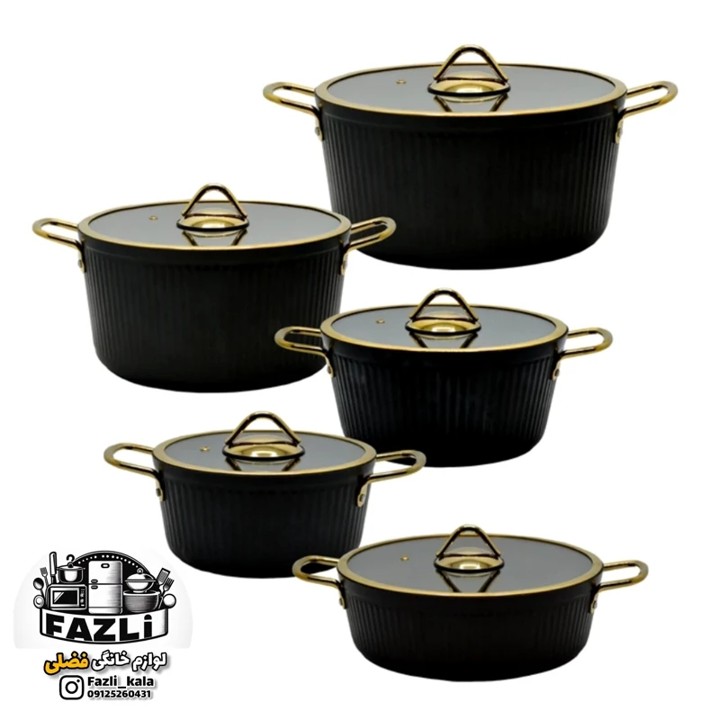 سرویس ۱۰ پارچه شامل : ۴ قابلمه ۲۰_۲۴_۲۸_۳۲ و یک تابه دودسته ۲۸