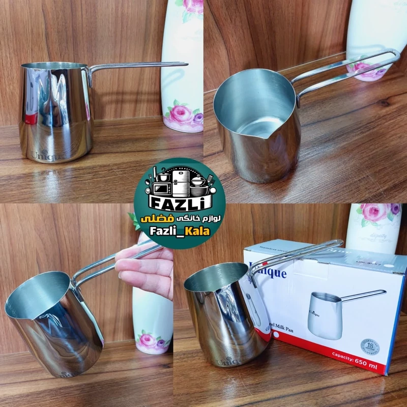 شیرجوش استیل یونیک سایز کوچک ✅️قالب یک تکه ✅️تمام استیل ضخیم ✅️استیل استندلس 18/10 ✅️دسته جدید handcold ✅️طراحی زیبا ✅️از برند یونیک 💢مناسب قهوه و جوش آوردن آب و شیر و مایعات💢