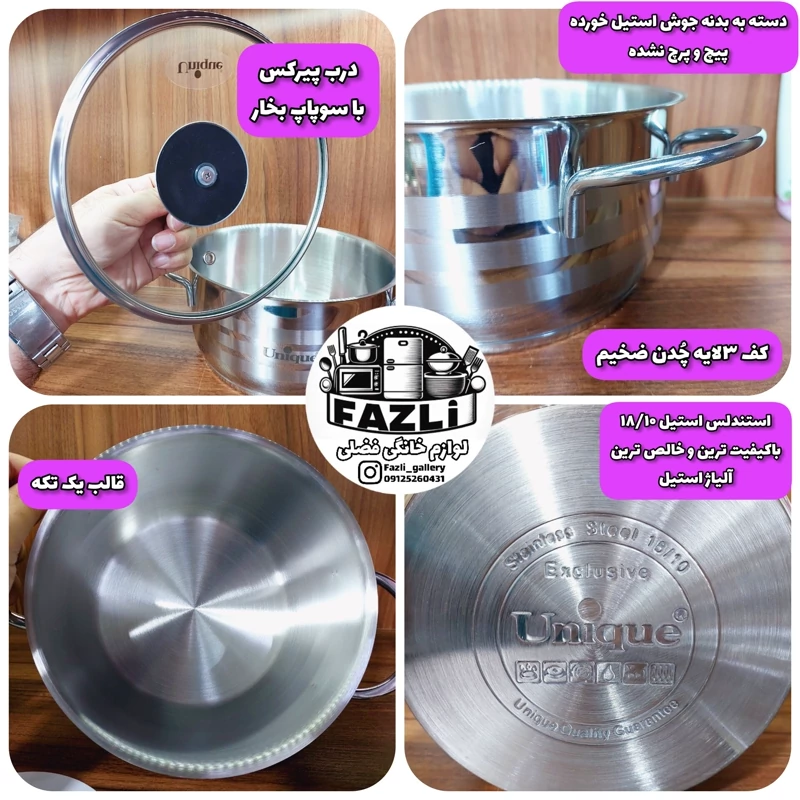 🔴قابلمه های استیل از بهداشتی ترین قابلمه هایی هستند که میتونید برای پخت و پز استفاده کنید حالا چه خوب که برند معتبر یونیک Unique این قابلمه هارو با کیفیت بالا و عالی تولید کرده و با خیال راحت میتونید خریداری کنید و سال های سال استفاده کنید جنس این قابلمه ها استیل ۱۸/۱۰ یک تکه هستش با کیفیت High Quallity با ۵ ستاره 🤩 استیل براق ضد زنگ استندلس استیل لایه ضخیم چدن در کف قابلمه ها کار شده کفه های چدن باعث میشه 🔸️پخت بهتری رو داشته باشید 🔸️تغییر رنگ بدنه ایجاد نشه 🔸️کف قابلمه ها ضخیم باشه و سوراخ نشه 🔸️نچسب و نسوز باشند این قابلمه ها قابلیت استفاده روی اجاق برقی و اجاق گازی رو دارند👌