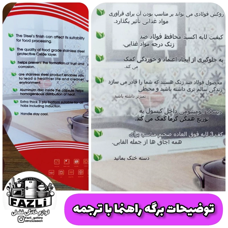 قالب یک تکه استیل استندلس ۱۸/۱۰ _ کف چُدن ۳لایه _ یونیک ۵ ستاره _ تکنولوژی ساخت جدید _ HandCold جدید _ دوست سلامتی انسان و محیط زیست _ قابل استفاده روی اجاق برقی و گازی