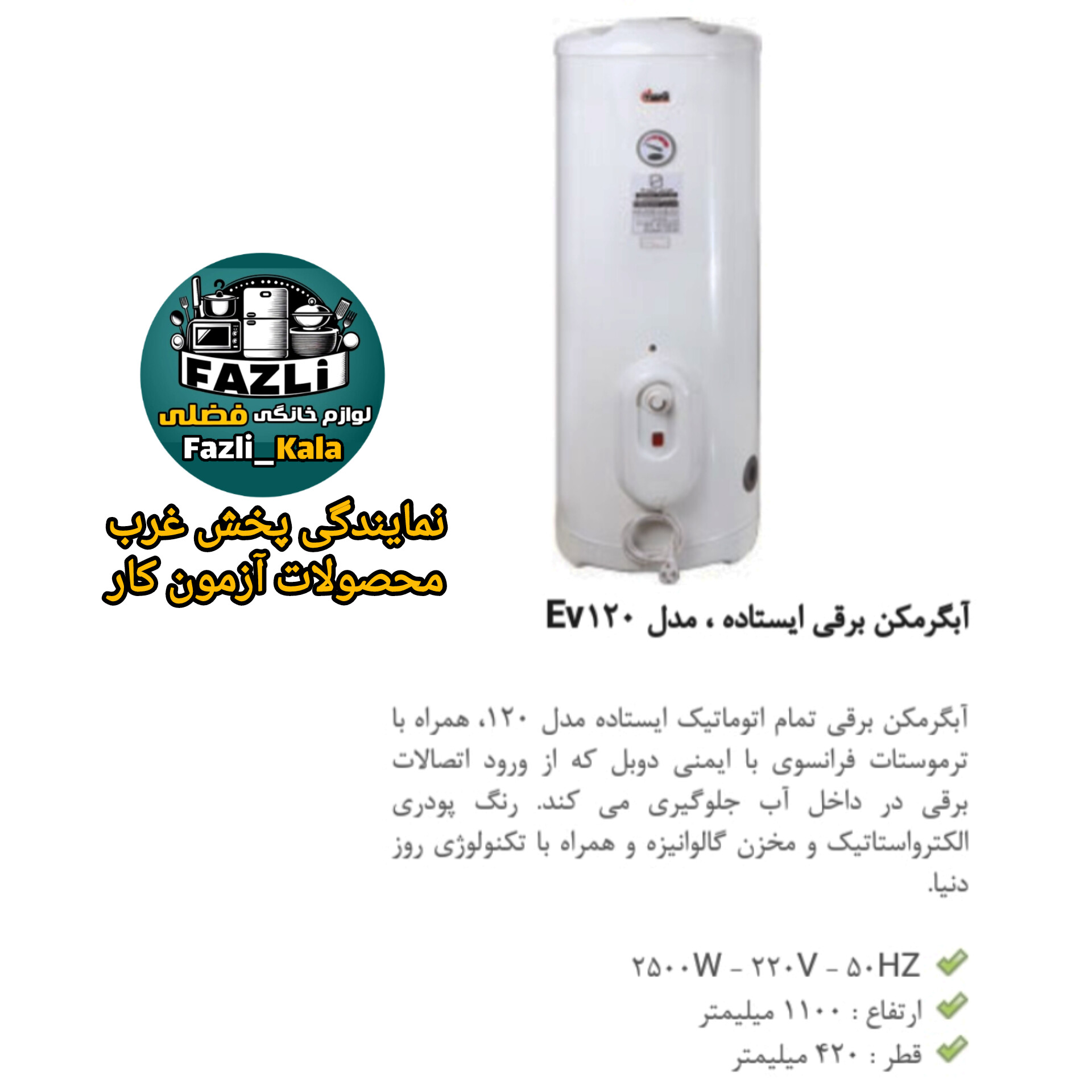 جنس: آبگرمکن ایستاده برقی آزمون مدل ev120