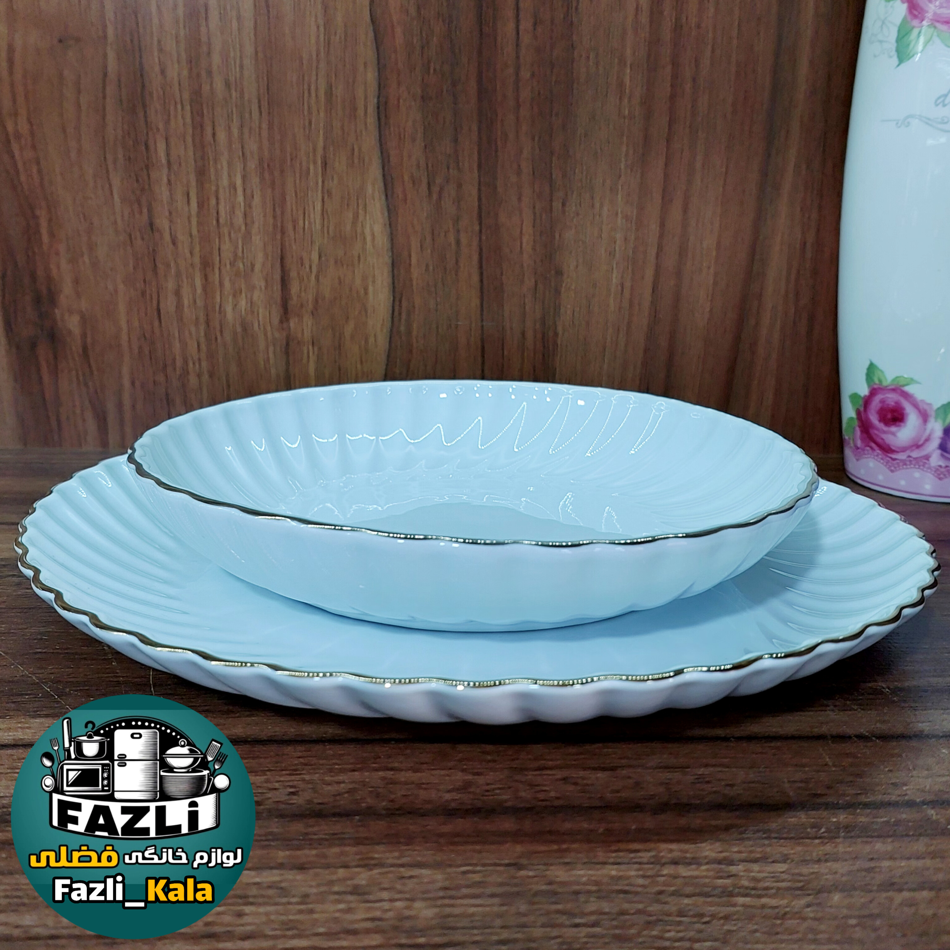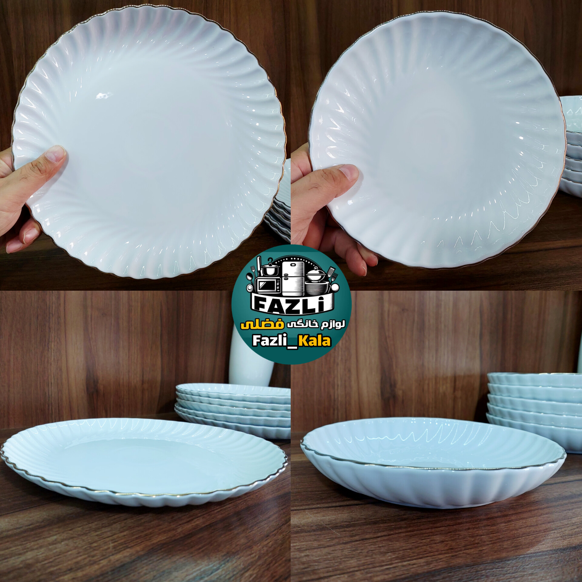 12 پارچه شامل 6 بشقاب پلو قطر 26 و 6 بشقاب خورشت قطر 20 عمق 3