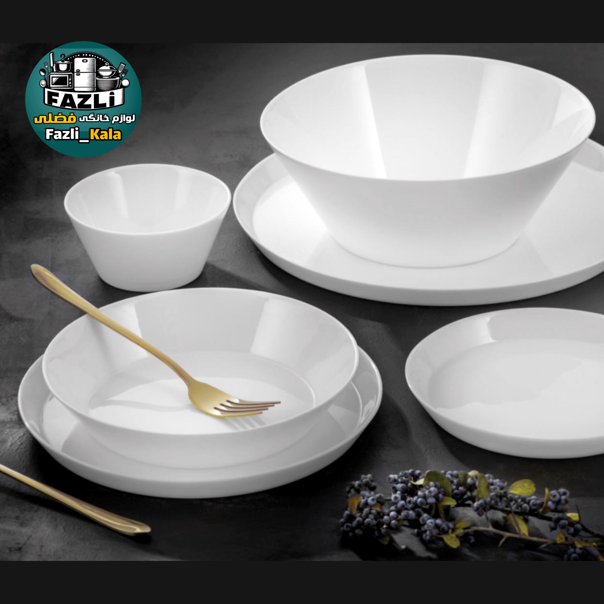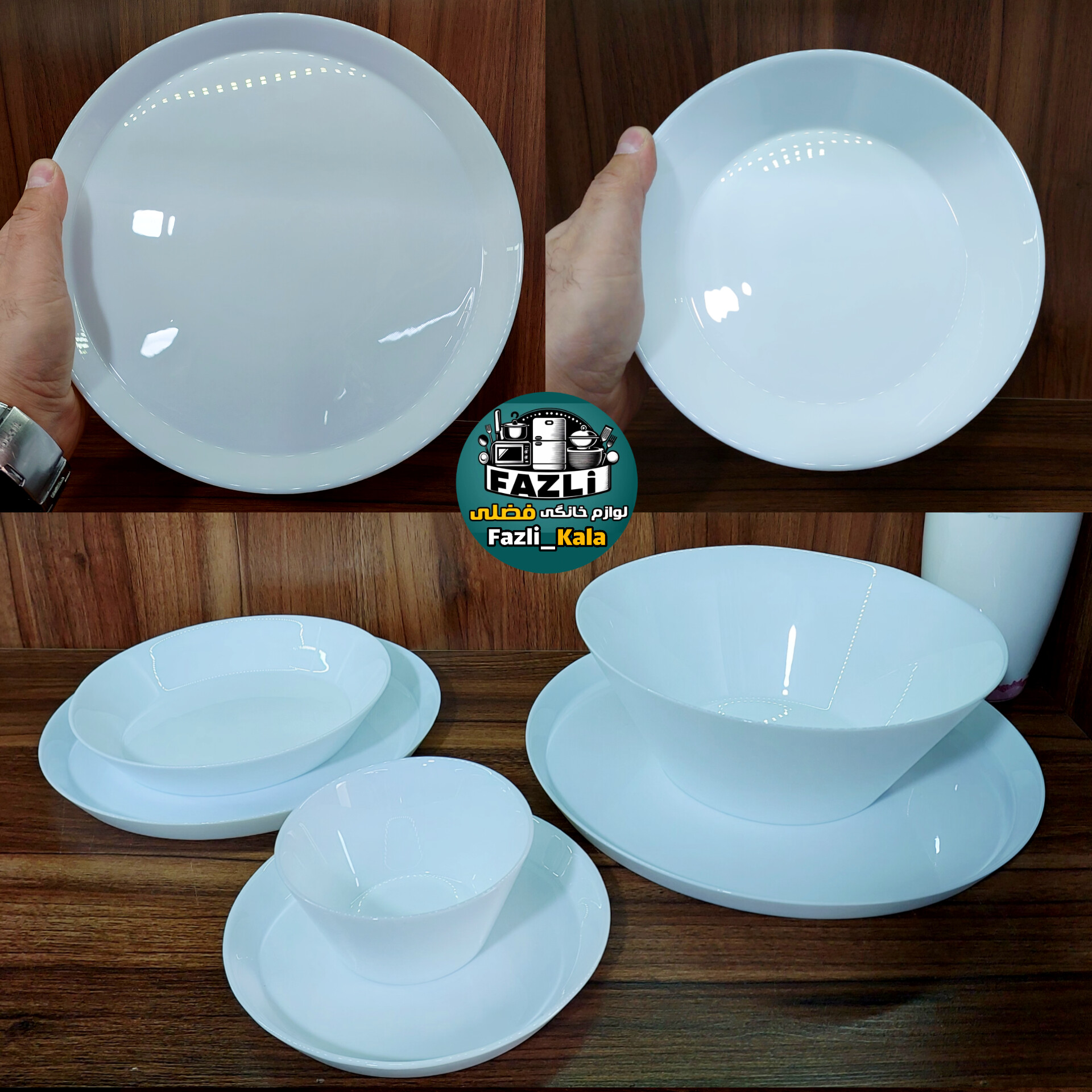 جنس: سرویس اوپال 26 پارچه 6 نفره سفید ساده گلدن اوپال قالب گرد استراکچر