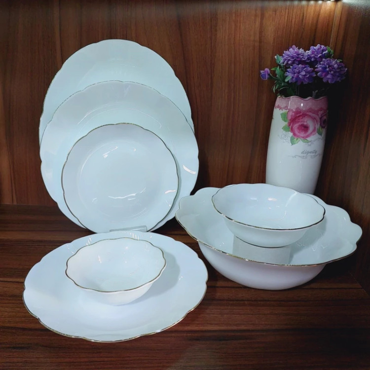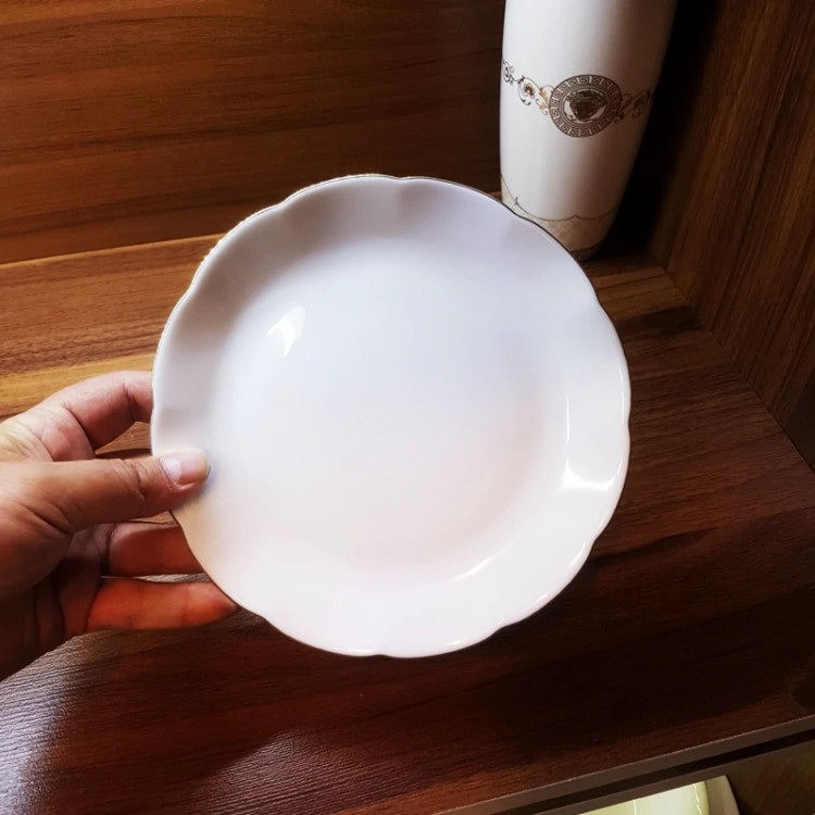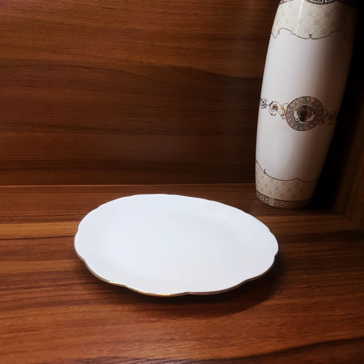 پیش دستی سفید جنس آرکوپال با لبه های طلایی طرح نیلوفری کیفیت عالی و درجه یک ساخت ایران 🇮🇷 کارخانه مقصود 💢برند دینو و داماس💢