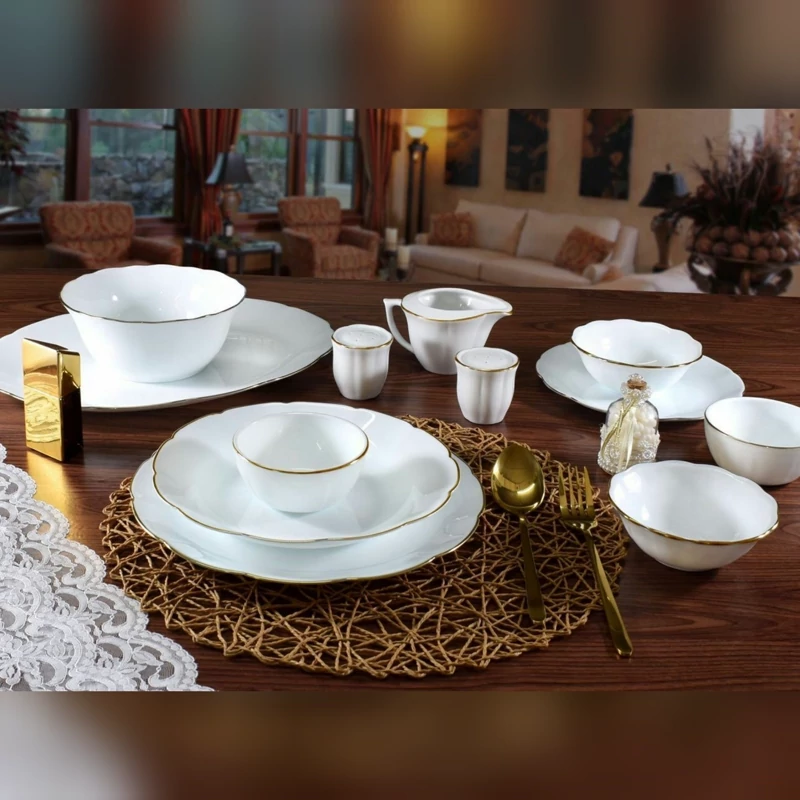 پیش دستی سفید جنس آرکوپال با لبه های طلایی طرح نیلوفری کیفیت عالی و درجه یک ساخت ایران 🇮🇷 کارخانه مقصود 💢برند دینو و داماس💢