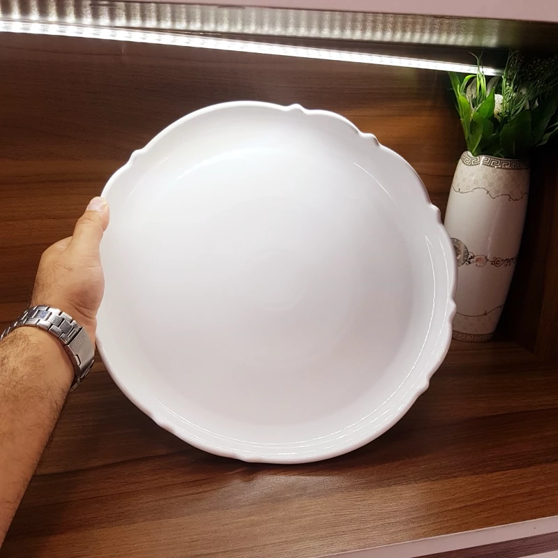 دیس گرد موج چینی لب طلای لمون جنس درجه یک و صادراتی با کیفیت ساخت بالا ساخت ایران آیتم بسیار کمیاب مناسب برای پلوپز
